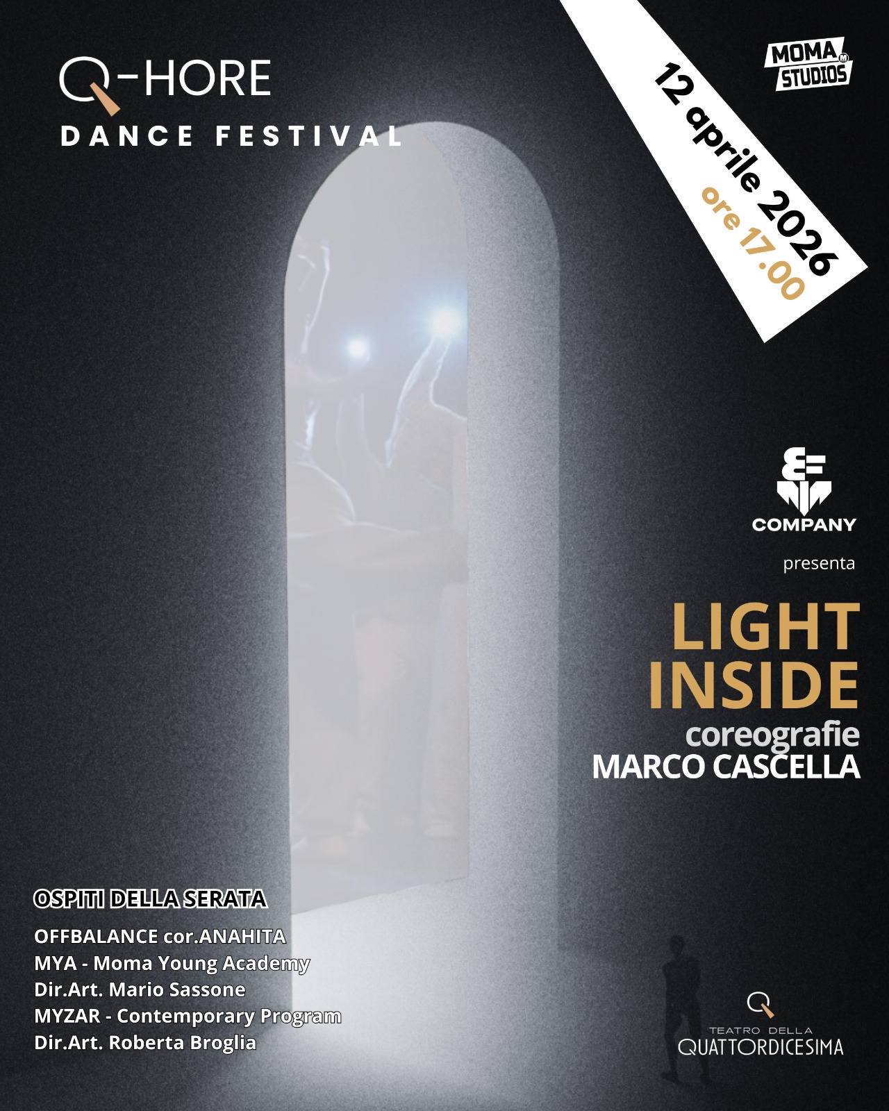 Ballerine Benedetta Moro, Laura Pedrazzini, Elena Dimolfetta, Julia di Creddo Oliveira, Giorgia Alioto, Chiara Bruno, Elettra Amori, Agnese Tarabelloni, Sae Sofia Fucentese, Martina Della Cà, Martina Riitano, Camilla Mora. 2. MYA – Moma Young Academy e percorso MIZAR – Modern Contemporary Accademie Moma Studios: i ragazzi portano in scena un pot-pourri di coreografie che rappresenta il lavoro di studio delle tecniche e la ricerca artistica, tra contaminazioni di stili e linguaggi coreografici.