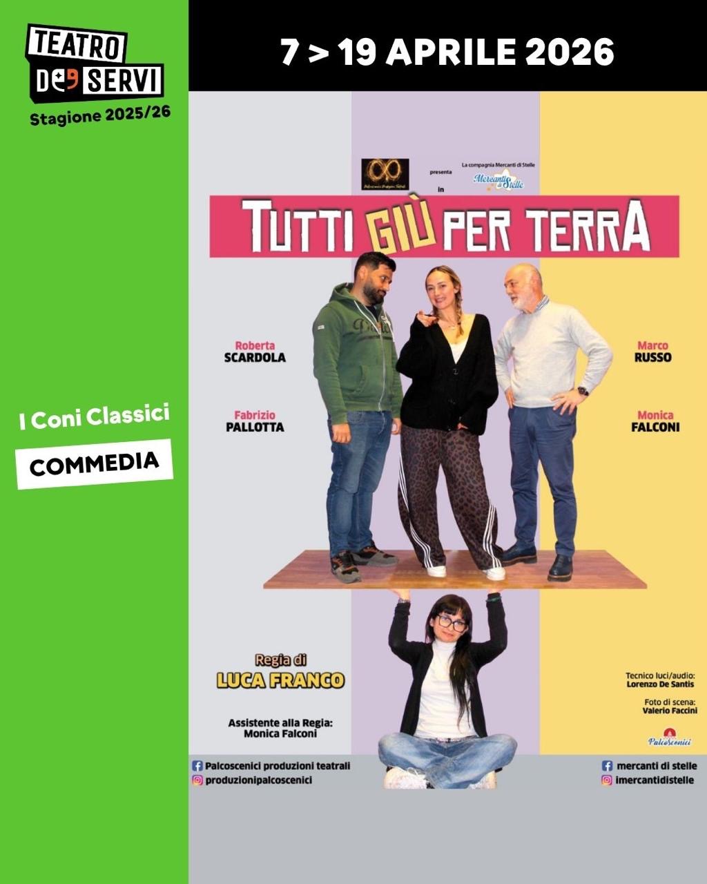 Teatro de' Servi Via del Mortaro, 22 | 00187 Roma Per informazioni e biglietti: tel. 06.6795130 | info@teatroservi.it Orari spettacoli: da martedì a venerdì ore 21; sabato ore 17:30 e 21; domenica ore 17:30 Biglietti: 25 euro